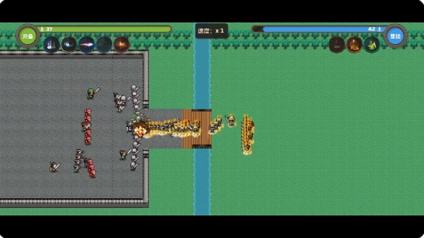 踏入游戏世界,呈现在眼前的是一片崭新的战场,像素风格的独特设计让这里充满别样氛围,双方阵营的对抗已然箭在弦上,一触即发。