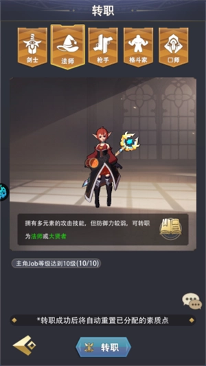 法师:后期可转职为法师或大贤者;