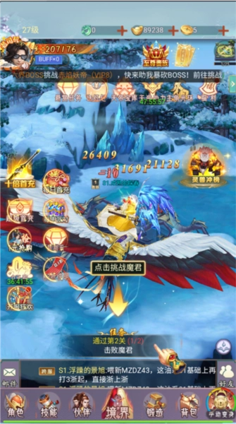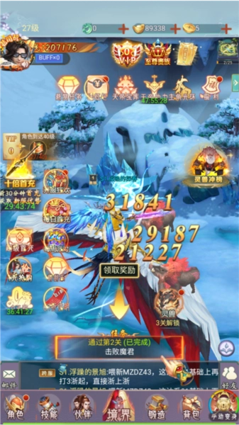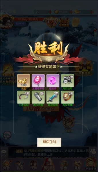 击败boss后考验获得闯关资源、装备奖励