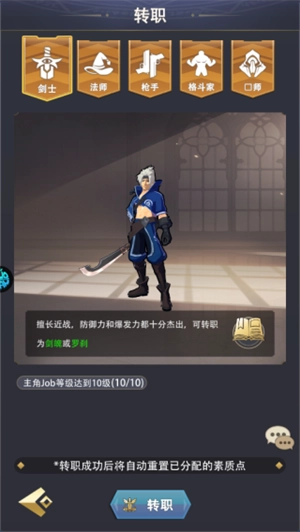 剑士:后期可转职为剑魄或罗刹;