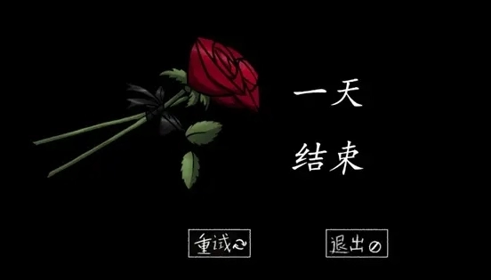 4、但是我们如果在第二个选择时,我们选择不接受玫瑰,就会看到一张卡片,什么写着我会自杀死亡。