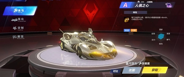 A级赛车人偶之心不仅性能实用性出色,基础属性里的速度与动力表现尤为亮眼,再加上实用的赛车特性加持,作为一辆出自星月转盘的优雅华丽A级赛车,它确实值得入手!