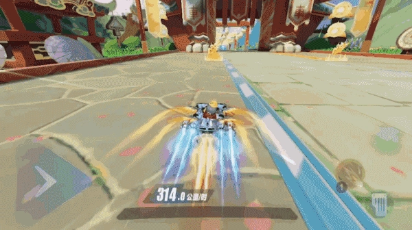 通过这个捷径时,赛车手需要长按左方向键,提前让赛车腾空,同时进行氮气延续操作。之后要把控好氮气延续的节奏,这样就能顺利通过捷径了。
