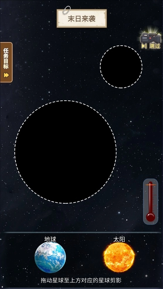 1、把星球拖拽到上方对应的星球剪影处,打造出一个末日风格的背景。