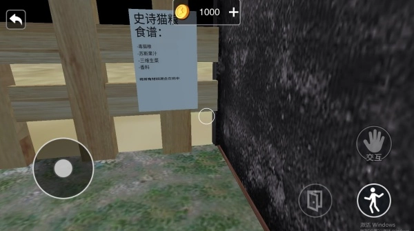 在角落里找寻猫咪的踪迹,点击交互按钮就能和猫咪互动啦。