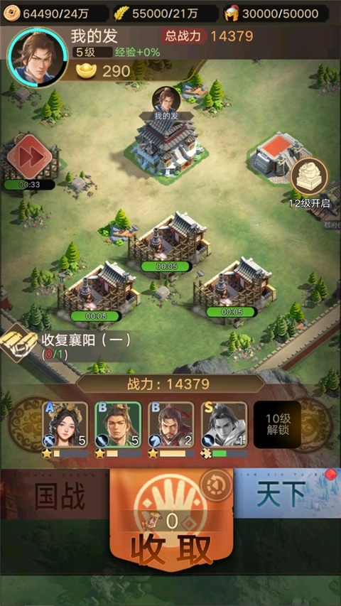 1、玩家进入游戏并抵达主城后,能够对各类不同的建筑物进行修复;