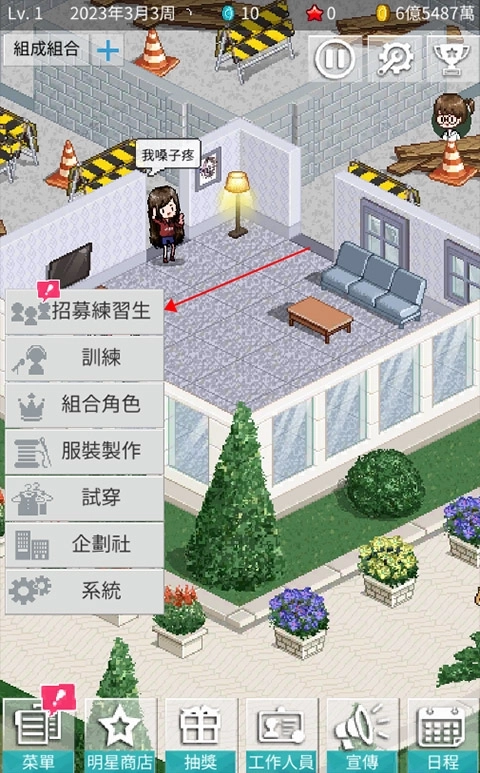 1、首先点击本页面游戏,然后进入游戏,我们点击【菜单】选项后选择招募练习生,进行练习生的招募工作。