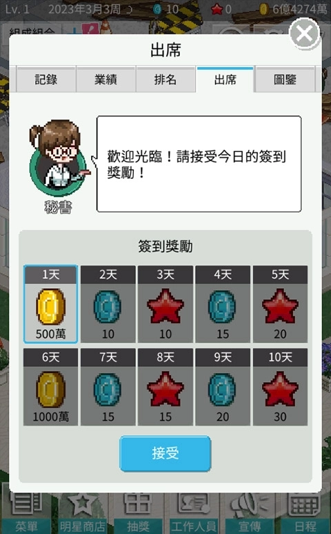 1、玩家要管理偶像的时间、精力和资金等资源,成为一名优秀的偶像经纪人。