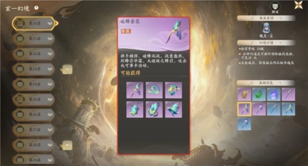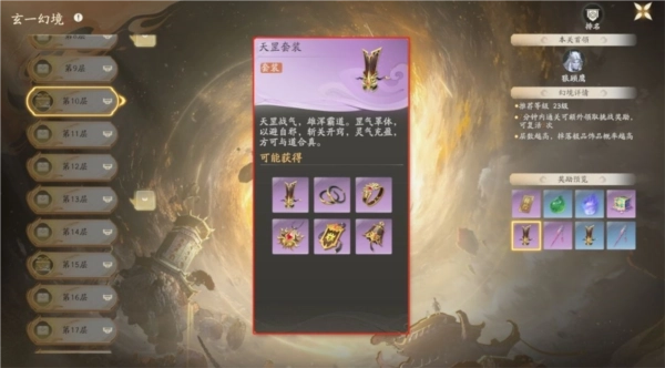•套装获取途径:副本系统中的历练板块下,多人副本·玄一幻境的第20至100层(具体掉落品质为:20-29层产出蓝、紫品质;30-49层产出紫、金品质;50-100层产出金、红品质)。