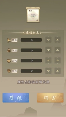 3、进行属性点分配,总共拥有10点可用于分配,这一点至关重要,建议不要随意分配,最好由自己手动操作。