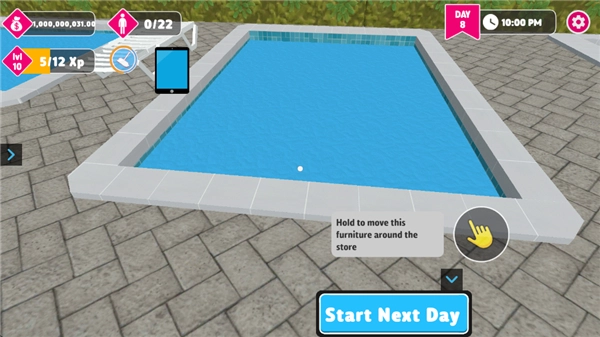 水上乐园模拟器手机版是一款3D休闲管理类模拟经营游戏,英文名为Waterpark,由Steam平台移植而来。在游戏里,玩家将化身水上乐园的经营者,需要购置泳池、躺椅、滑梯等各类设施,通过合理规划设施布局来开展运营,逐步拓展乐园的规模。随着经营进程的推进,玩家还能解锁更多丰富内容。此外,游戏中会随机出现突发事件,比如顾客意外溺水,玩家必须迅速采取应对措施,否则将面临罚款处罚。