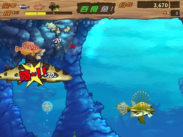当玩家的角色逐步成长后,便可以尝试挑战体型比自身更庞大的鱼类;一旦成功将它们吞噬,就能获取更丰厚的成长值与奖励。