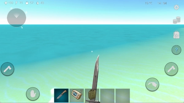 4、是时候看看大海了~不知道有没有鲨鱼呢?另外点击斧头按钮可以挥动手中的武器哦!