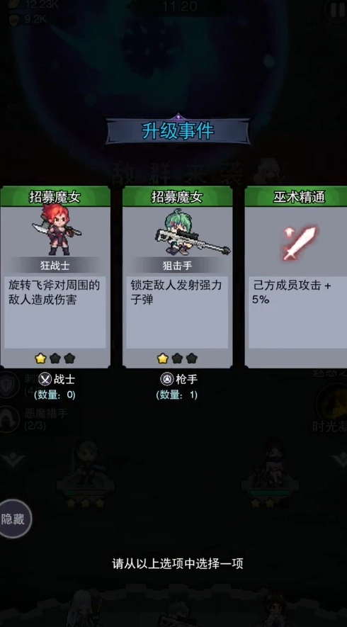 1、你将扮演指挥官指挥女巫击退怪物,你需要召唤不同的女巫与敌人战斗。