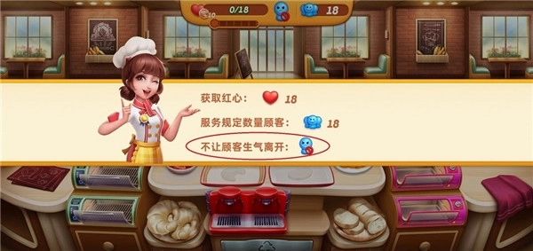 3、爱心机制:收集顾客的爱心。需在顾客心情值降至爱心线以下之前,完成该顾客的所有需求。
