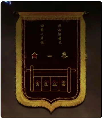9、按照箱子上标注的“哀、怒、惧、憎、爱”顺序,打开一楼右侧厢房的大门。墙上锦旗提示“合=3”,这里的“合”指的是汉字横笔画的数量,据此可推知下方的密码为:4325。