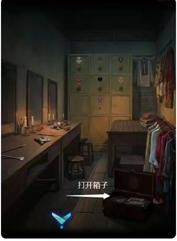 8、用钥匙打开戏服架子下方的箱子,拿到第二个拉环,箱子上还留有一首诗,旁边标有序号,顺序是哀、怒、惧、憎、爱。