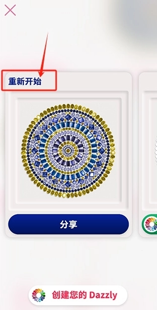 2、我们只需点击对应的图案,再点击左上角的重新开始按钮,就能重新进行填充操作,无需删除已有的图案。