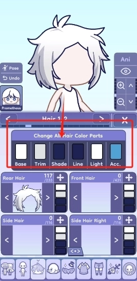 5、还可以在如图位置更改头发线稿的颜色。