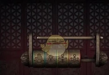 2.铁牌放到右边彩色格子的图案上,得知开门的密码,如图所示