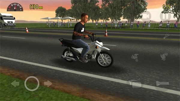 首先点击右侧第一个图标,摩托车头就会直接翘起,接着持续加速,就能保持前行状态。