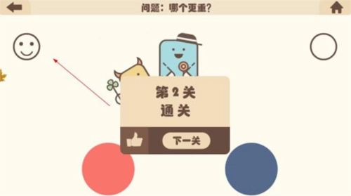 分别向上拖动两个球,通过感受哪个球下降得更快来判断哪个更重,然后点击较重的那个球上方的圆圈。