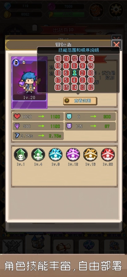 3、在游戏的角色养成系统中,你可以体验士兵英雄的升级玩法,每当士兵升级到特定等级时,就会解锁全新的技能属性!