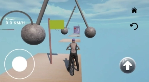 2、避开障碍物,为跳跃计时,并保持自行车稳定以保持在轨道上。