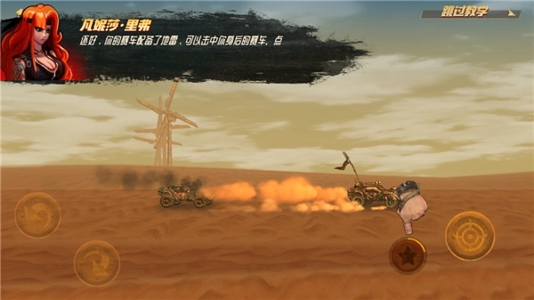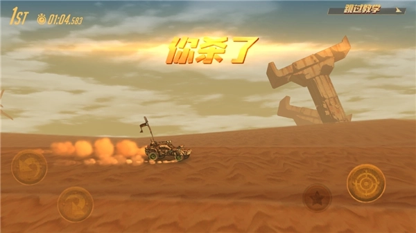 4、把敌方汽车摧毁后,它会重新出现;点击地雷,能击中身后的赛车。