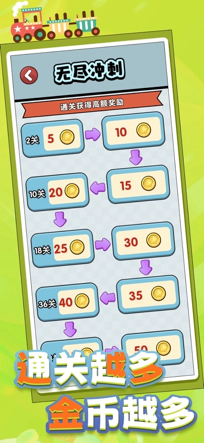 完成任务的规则是:每一个关卡都会设定需要连接消除的车厢数量。只有当所有需要排序的车厢都成功连接并“发车”之后,玩家才能进入到下一个关卡。