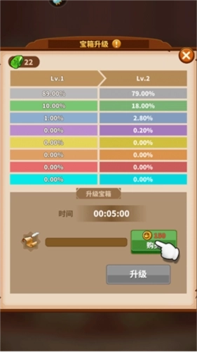 5、所获得的奖励可用于提升宝箱等级,宝箱等级越高,开出珍稀装备的概率就越大