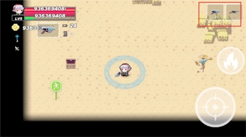 进入游戏后,战斗会直接开启,屏幕两侧设有两个摇杆按钮,左边的用于操控主角移动,右边的则负责调整攻击方向。