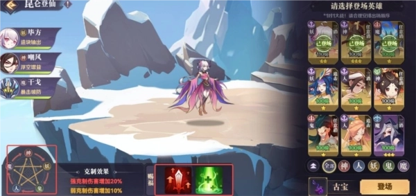昆仑登仙玩法仅触发种族克制加成:强克制提升20%伤害,弱克制提升10%伤害。消除加成与灵兽在此玩法中均无法使用,因此战斗时需留意双方种族属性,适时调整上阵英雄,避免因被反克制而陷入苦战(别问我咋清楚的,都是踩坑踩出来的教训)。
