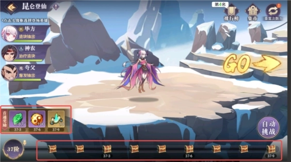 开服第二天会开启本次游戏的新玩法【昆仑登仙】。简单来说,这个玩法就是选择要登场的英雄,接着开启一路1v1的真男人对决——打赢就能获取奖励,失败的话就换下一个英雄上场,直到三个角色都失败才结束。玩法本身理解起来不难,但其中还有一些思路,我想在这里和大家补充说明一下。