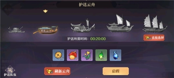 八荒里的药兽峡谷护送云舟玩法,刷新时可能进入下一级,也可能退回上一级(退回的概率还挺高)。别固执地非要刷到最后两个高品质云舟,差不多刷到中间的紫色云舟就可以出发了。而且这刷新费用是越刷越高的,千万不要上头。