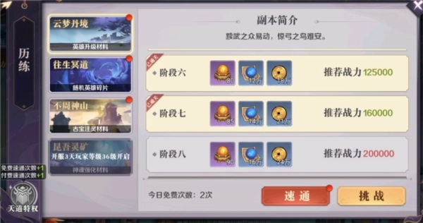 不少人大概是把历练当成副本对待了,每天一上线就先去扫荡。但这样做其实可能会损失部分资源,毕竟前期阶段每天的提升幅度都挺明显的——说白了,与其直接扫荡,不如先把自身实力提升完再去挑战,等挑战到实在打不过的时候,再回来扫荡。要知道,前期哪怕只是领先一点点,都至关重要。