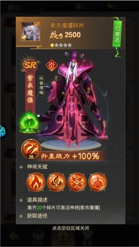 把获取到的神将加入阵容后,可借助升星、配备神器、激活御魂等途径提升战力。