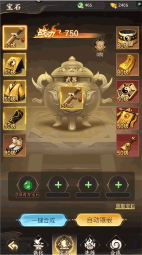 获得的装备可以通过合成、镶嵌、强化来提升属性。