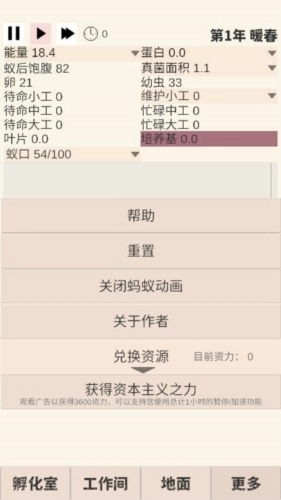 2、扮演蚂蚁的角色,去收集更多资源,持续升级你的蚂蚁和蚁丘。