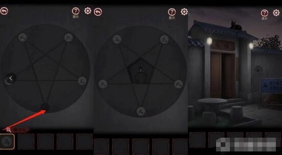 4、在大门右边墙上有一个五星图,将之前得到的棋子马放入其中,在根据得到的线索移动棋子就能将大门打开。