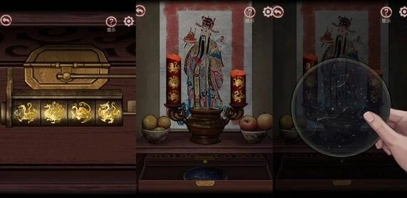 16、然后去查看灶王爷供桌并点燃两根蜡烛,等待蜡烛熄灭就能得到供桌抽屉密码的线索。