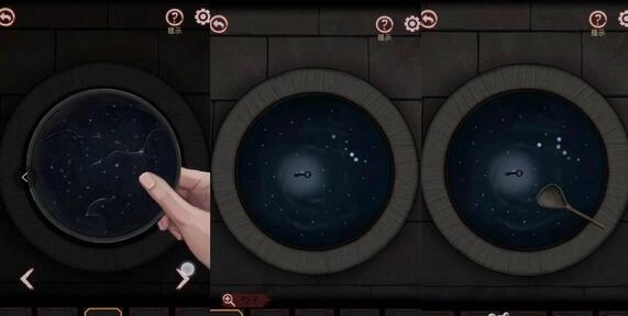 18、再到院子中并将星盘放到水缸的上面,再转动星盘就会在水缸中出现一把“钥匙”,使用勺子将其捞上来。