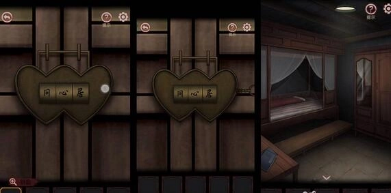 19、来到院子左边的房间前,将木炭涂抹到门上模糊的字上就能得到“同心居”。