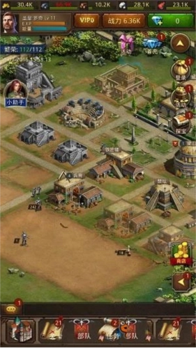 军营:需在城内的空地块上进行建造,建造过程会消耗一定资源,并且存在等待时间,若使用钻石则可立即完成建造以跳过等待;无论是升级还是建造建筑,在等待过程中都会占用1个建筑位(即空间);当升级所需资源不足时,允许直接用钻石来替代资源完成升级操作。