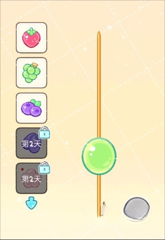 选择自己喜欢的水果,放在签子顶端,轻松下滑。