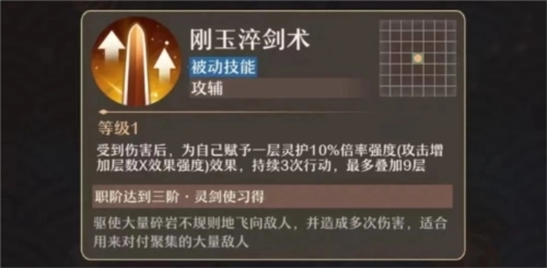 其职业属性代表特色:生存治疗、储伤高伤/禁触发技能(如风剑反击)、降低敌方攻击力。(体护)