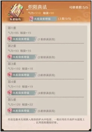 功法带来的属性:每张执念牌都自带2本功法,弟子可在炉子里进行修炼。修炼每本功法都具有主副两种属性加成,主属性与执念本身属性一致,也确定了其培养的方向。