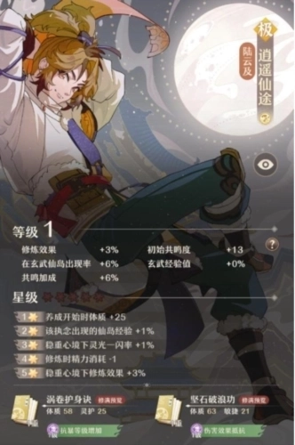 其次是坤哥自身所带的功法与法宝。玄冥经心录在修炼过程中赋予的灵护和体质均为核心属性,其提供的天赋能够直接依据防御值来提升速度,这恰好弥补了站场前排对速度的迫切需求。有了这一天赋,在养成过程中便无需再为补充速度而费心,也让执念卡的选择范围更加宽泛自由。