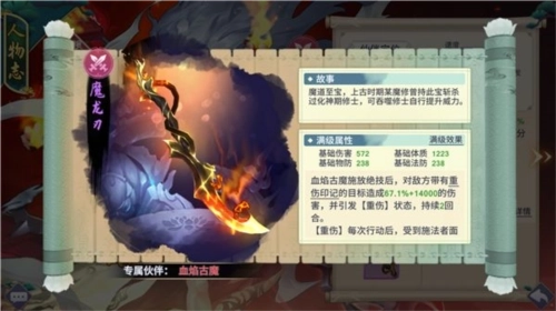 而血焰古魔的法宝魔龙刃则可以触发重伤印记造成额外的伤害并提供重伤效果。总体来说是对输出的提升,但是没有特别惊艳。不过由于本身的强悍,百里兄还是推荐抽到就好好培养吧。