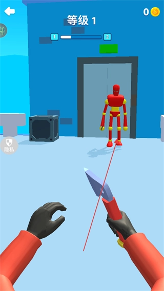 瞄准红色机器人投掷飞刀,精准攻击可提升伤害。